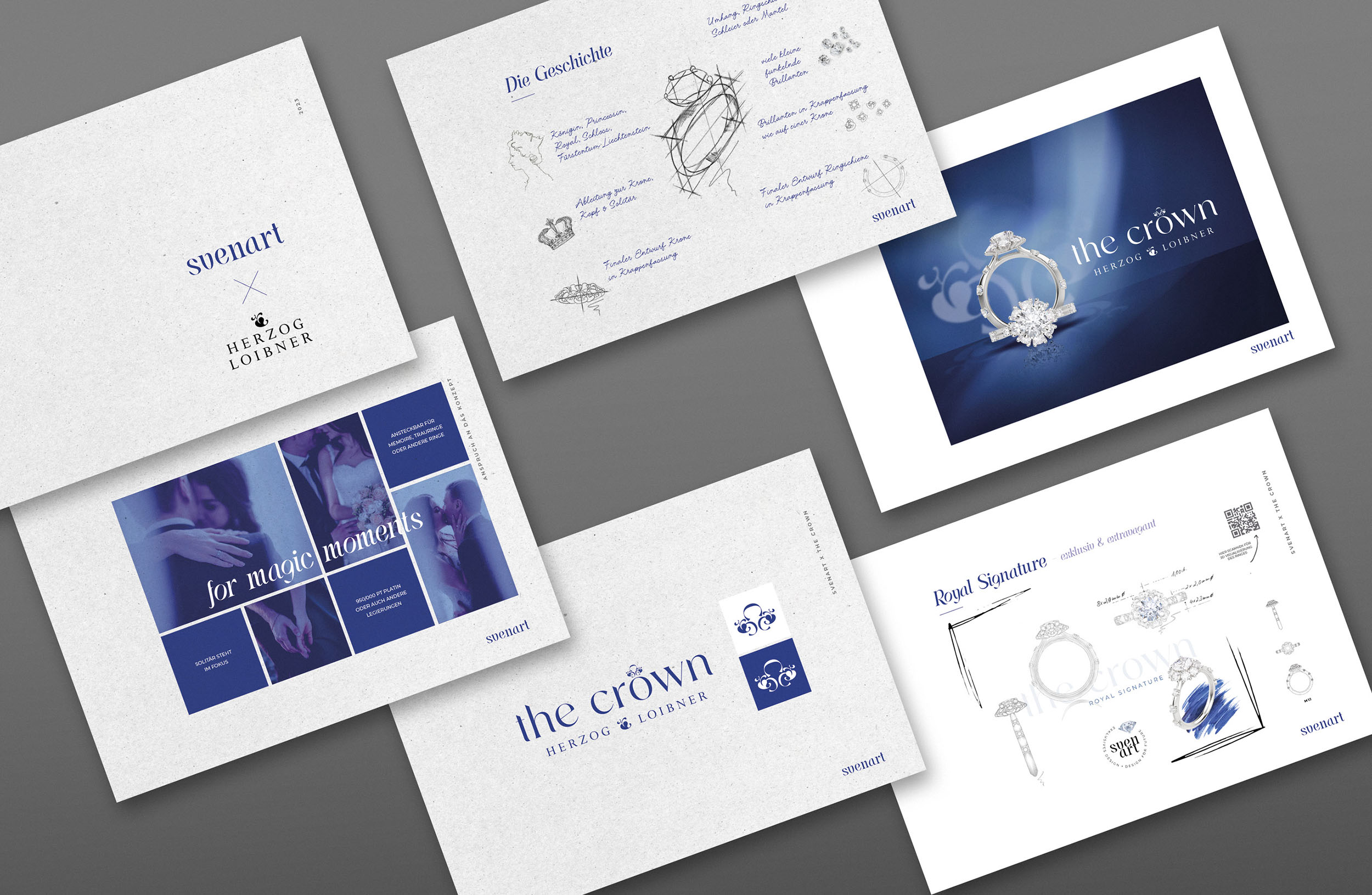 Neben dem exklusiven Ringdesign wurde auch ein umfassendes Kreativ- und Vermarktungskonzept entwickelt. Dazu gehören hochauflösende 3D-Visualisierungen des Rings, die eine realistische Darstellung des Designs ermöglichen. Zusätzlich wurde ein komplettes Bild- und Marketingmaterial erstellt, das dem Juwelier für Werbezwecke zur Verfügung gestellt wurde. So wurde sichergestellt, dass The Crown nicht nur gestalterisch überzeugt, sondern auch erfolgreich in Szene gesetzt und vermarktet werden kann.