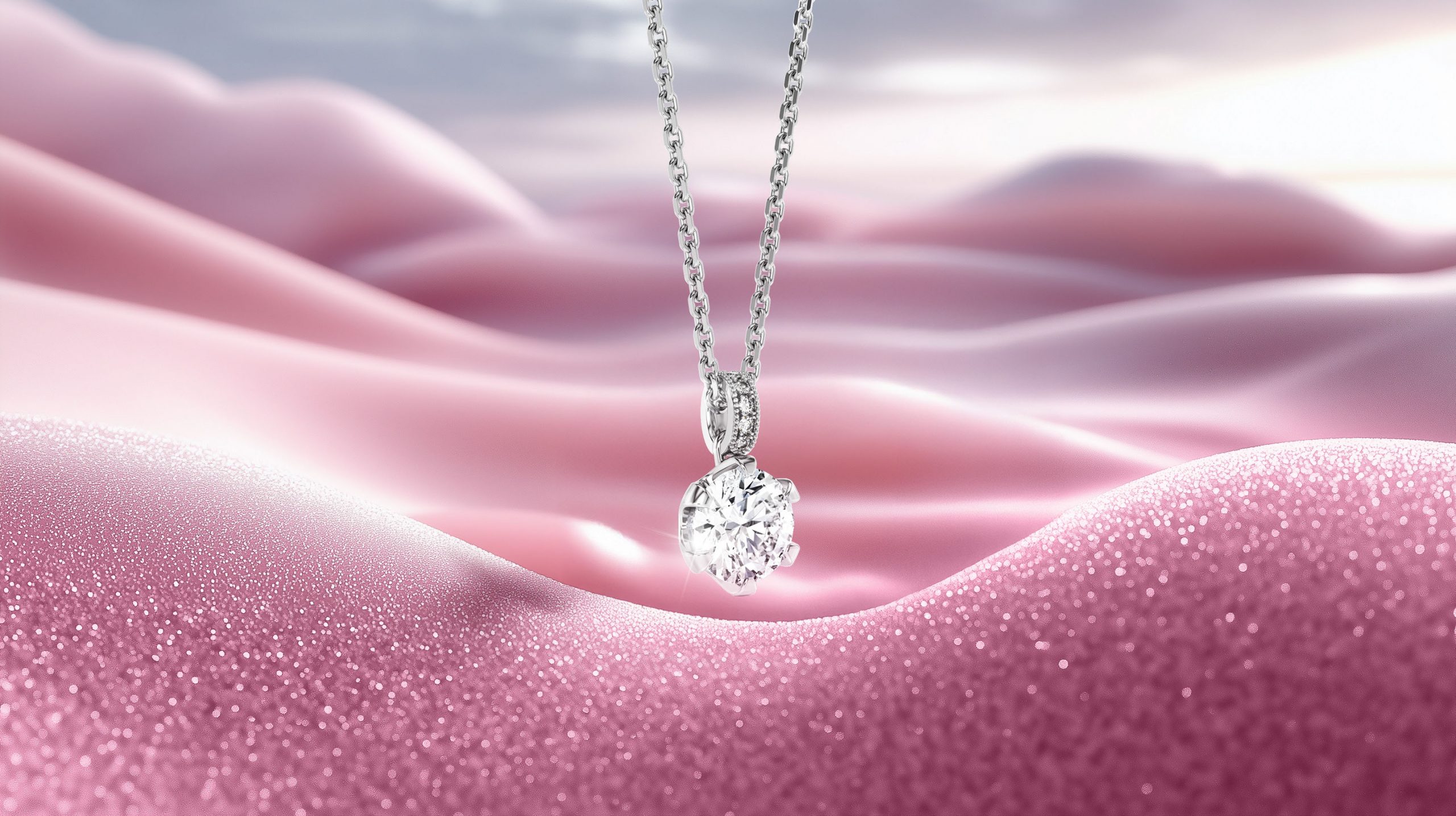 Passend zum Verlobungsring wurde ein elegantes Collier mit einem kleinen Anhänger angefertigt. Der Anhänger greift die Designmerkmale des Rings auf und präsentiert einen funkelnden Brillanten in einer stilvollen Fassung und bildet so ein Ensemble, das für zeitlose Schönheit und unvergängliche Liebe steht.